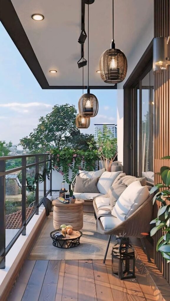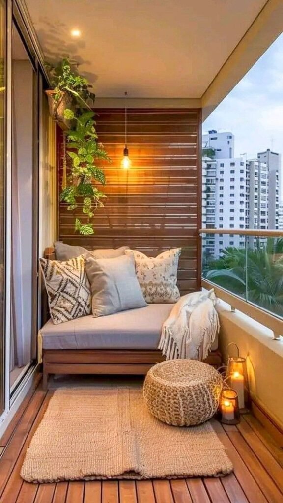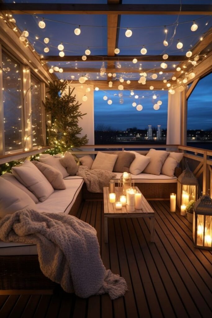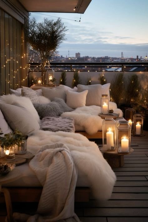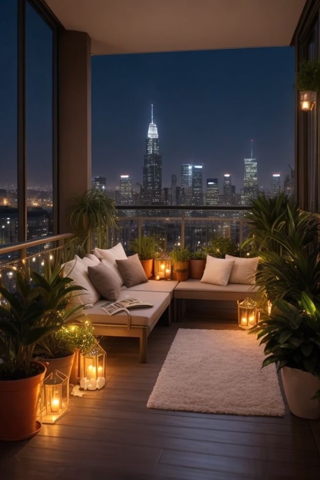 Los colores son un punto muy importante a la hora de decorar tus espacios, si quieres dar la expresión de un lugar de calma puedes utilizar colores pasteles en los muebles o en distintos accesorios. También si quieres que tu balcón sea testigo de momentos agradables puedes decorarlo con una mesa y muebles, y a su alrededor bombillas.