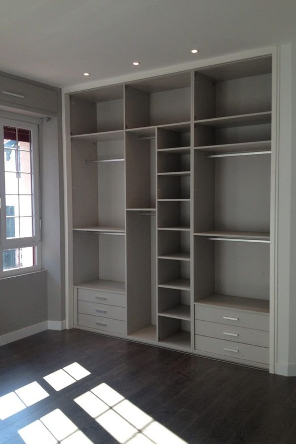 Empotrados a la pared: Son aquellos armarios que vienen «dentro de la pared», este tipo de closet es ideal para espacios pequeño.