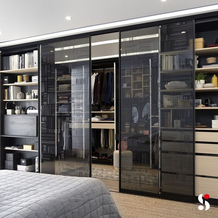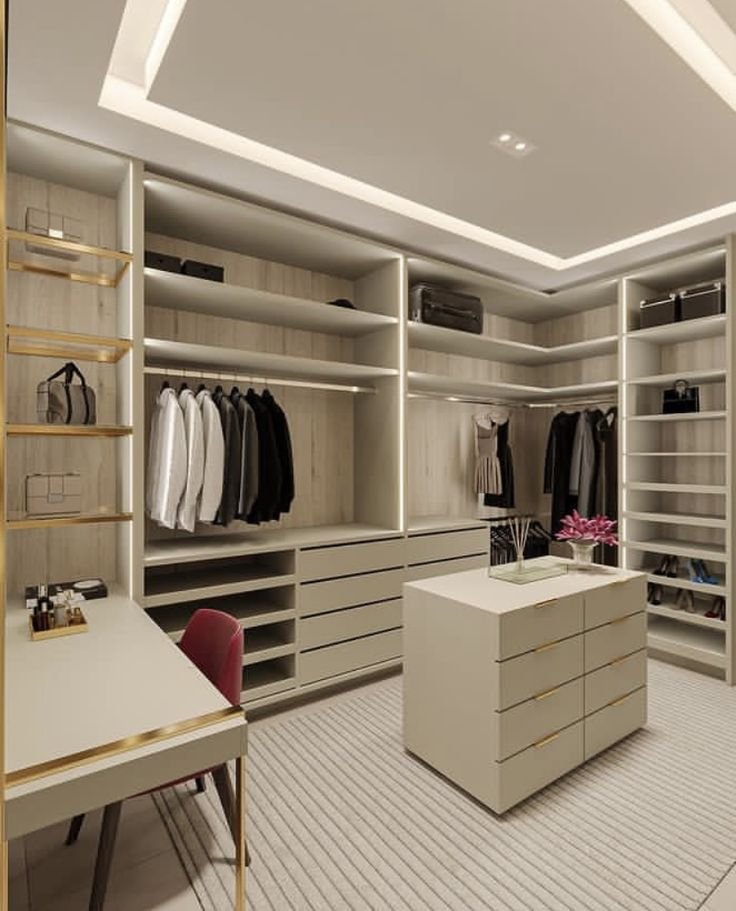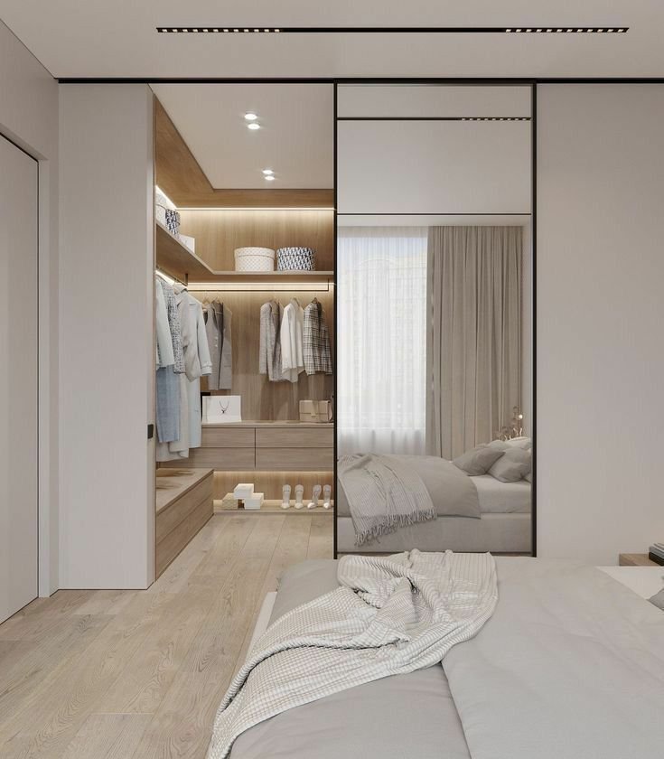 Espacio o minicuarto añadido: Este armario es un cuarto aparte para tu vestidor, hay ocasiones que se coge un espacio de habitación y se encierra con drywall o laminas especializadas, puertas corredizas o cortinas