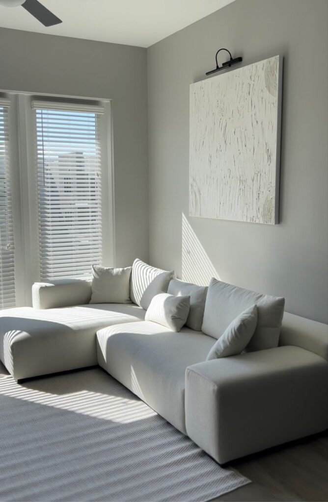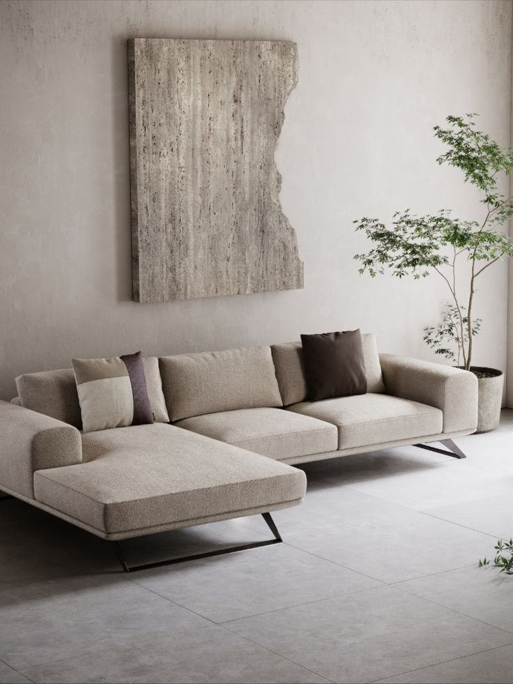 El Sofa en L viene con la forma de la la letra «L», en este tipo de sofás hay espacio entre tres a cuatro personas, son sofás que se encuentran en la mayoría de materiales como cuero, tela, etc.